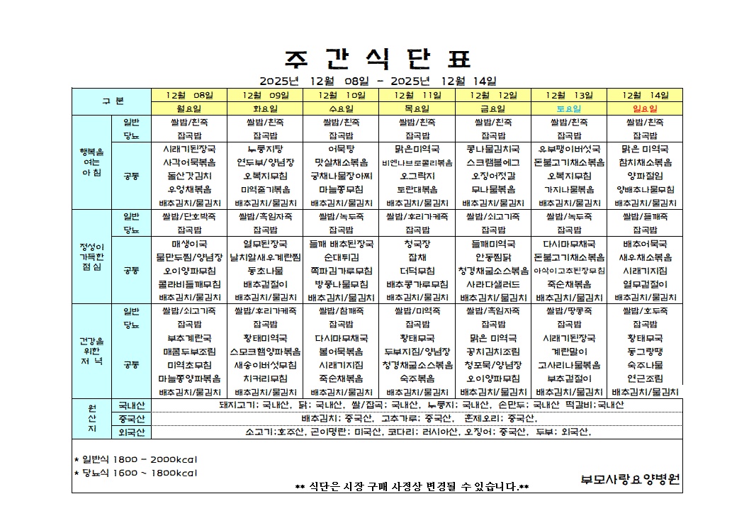 HOME > º´¿øÀ̾߱â > ½Ä´ÜÇ¥