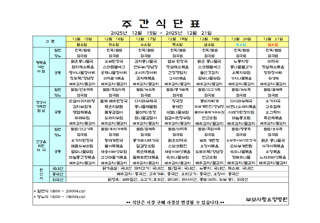 HOME > º´¿øÀ̾߱â > ½Ä´ÜÇ¥
