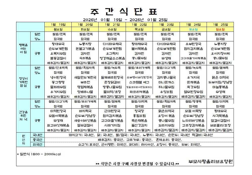 *1¿ù ¼Â°ÁÖ ½Ä´ÜÇ¥