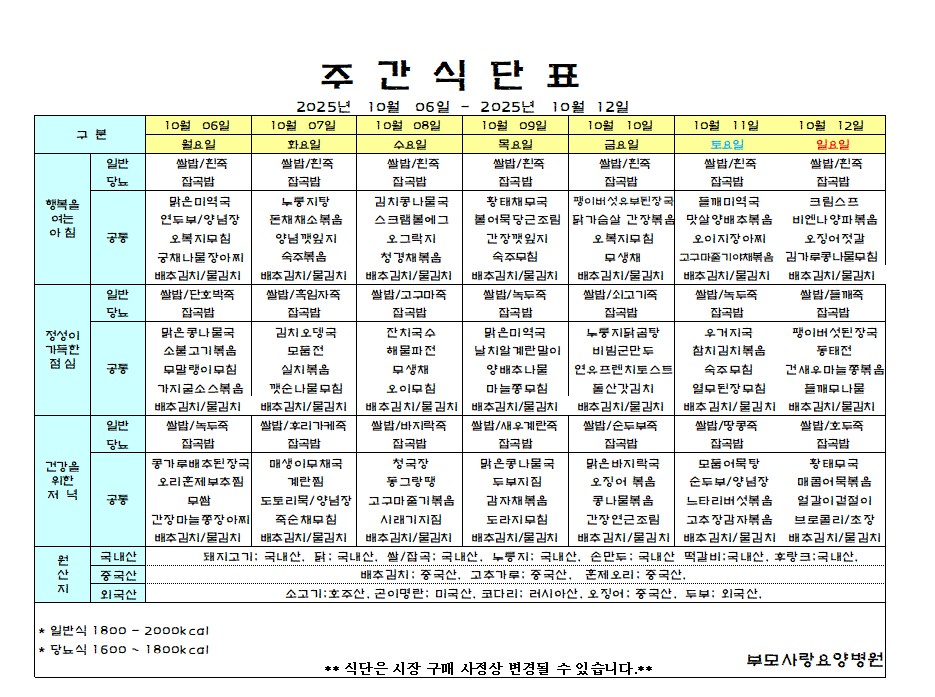 HOME > º´¿øÀ̾߱â > ½Ä´ÜÇ¥