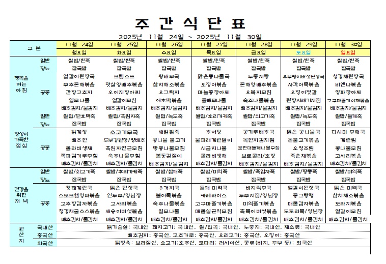 *11¿ù ³×¹øÂ°ÁÖ ½Ä´ÜÇ¥