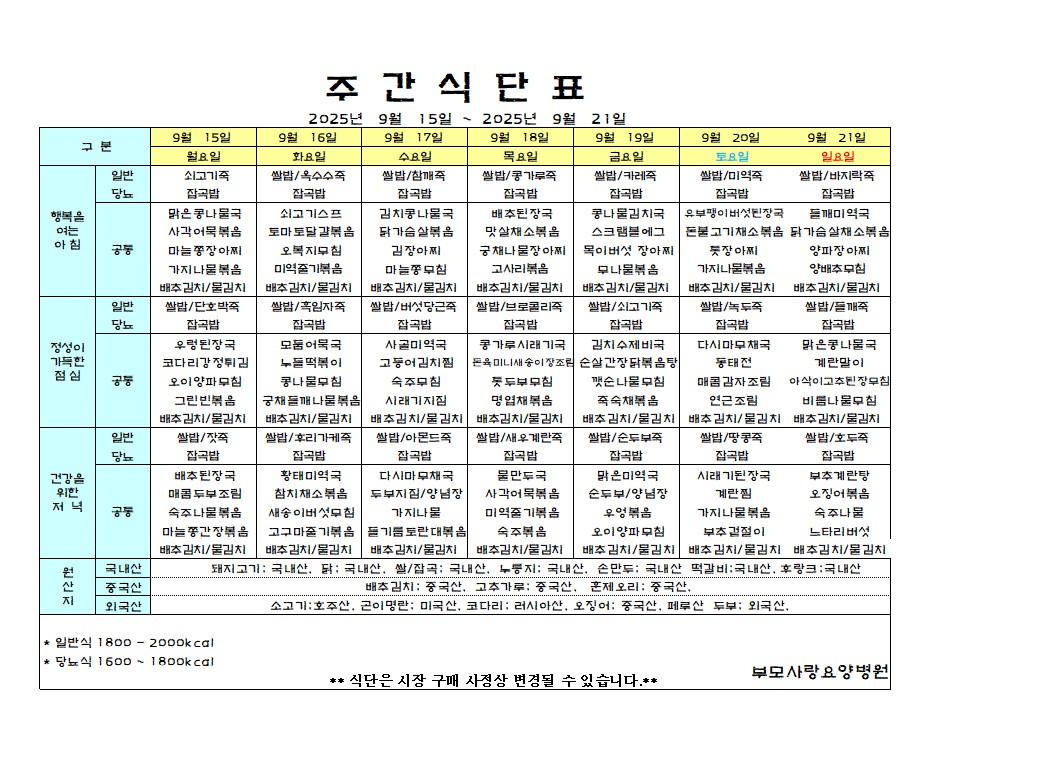 HOME > º´¿øÀ̾߱â > ½Ä´ÜÇ¥